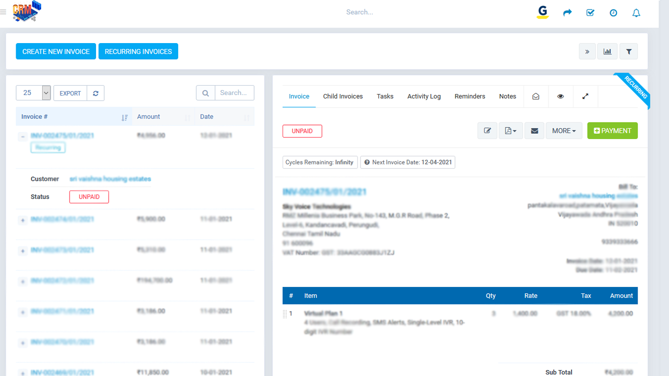Bill your customers in a more faster way via our awesome Stripe Subscription feature.Create subscription, send the subscription to your customer and let CRM and Stripe do all the work behind the scenes.