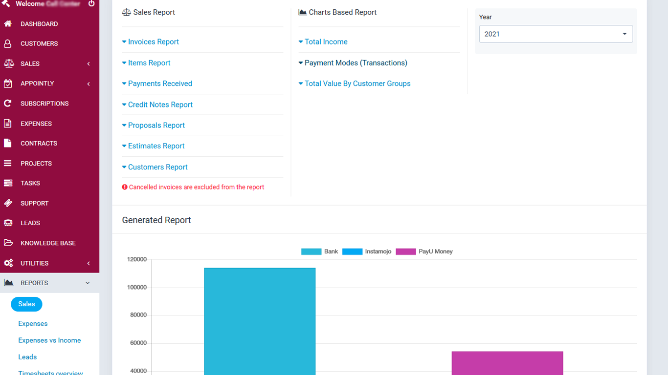 Generate reports and have clear view of everything. Keep track of income vs. expenses and leads conversions. Knowledge base report included.